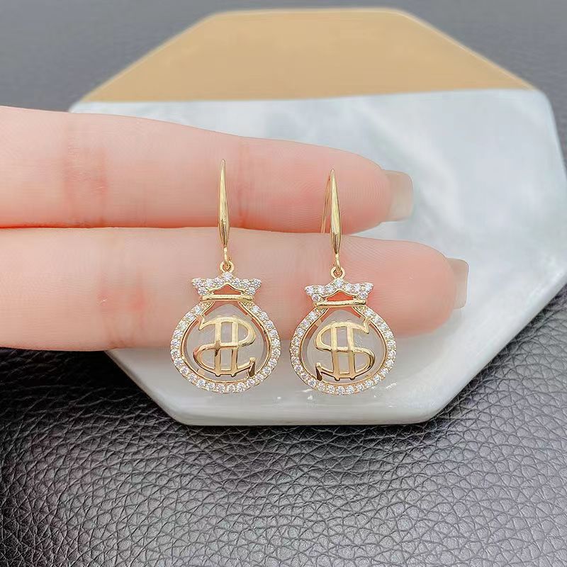 大衆デザイン感超フラッシュ銭袋イヤリング韓国気質個性ファッションピアス女2024新型潮耳飾り女
