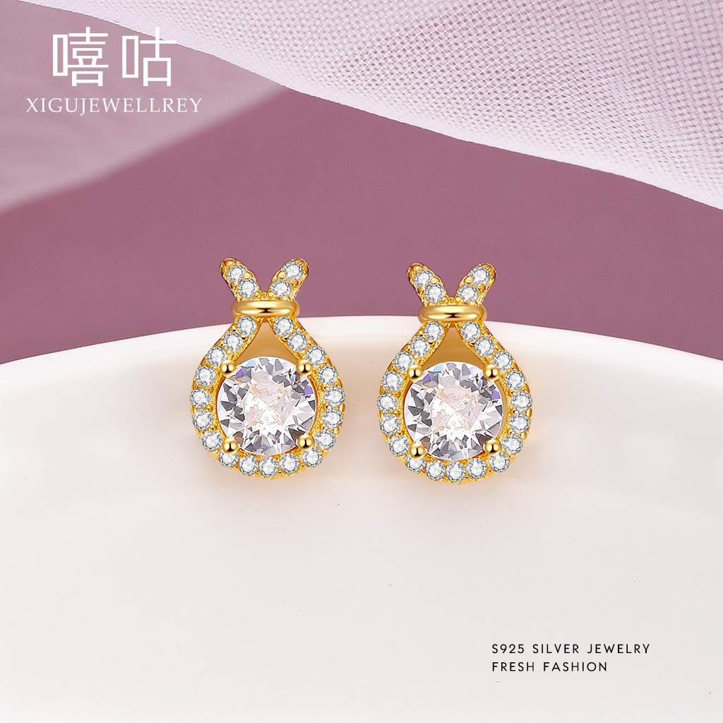 にこにこE2216 S925銀銭袋ジルコンピアス女性大衆気質高級感イヤリング軽贅沢新オリジナル