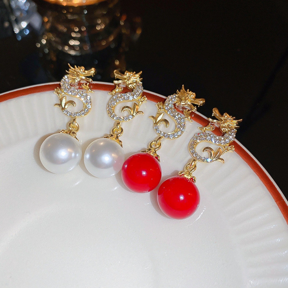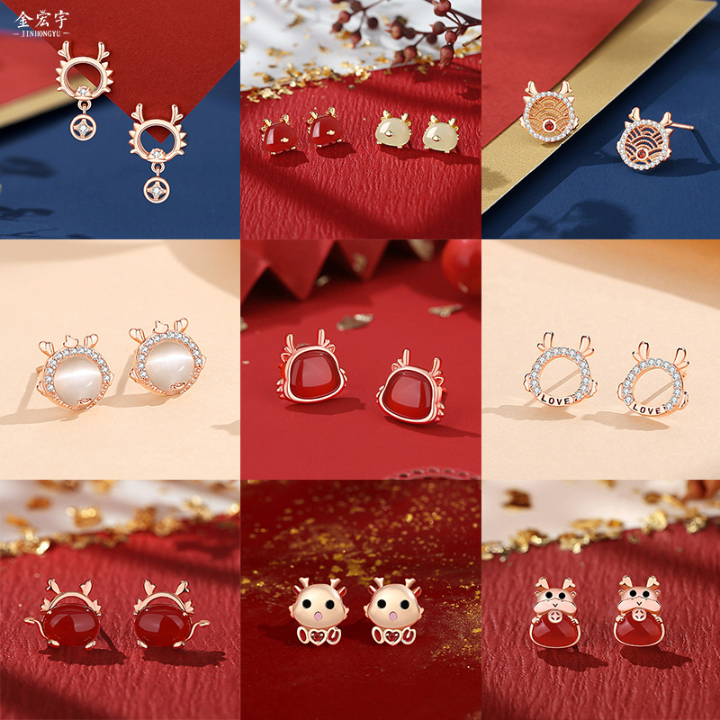 2024新年龍年ピアス純銀国潮新中国式イヤリング本命年国風生肖耳飾り文創アクセサリー