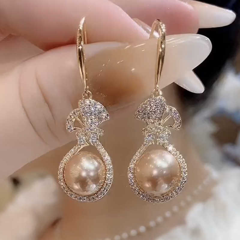 ライトラグジュアリーでスイートなパールの小さなマネーバッグイヤリング、ハイエンドのS925シルバーニードルイヤリング、ニッチなデザイン、ファッショナブルでシンプルなイヤリング