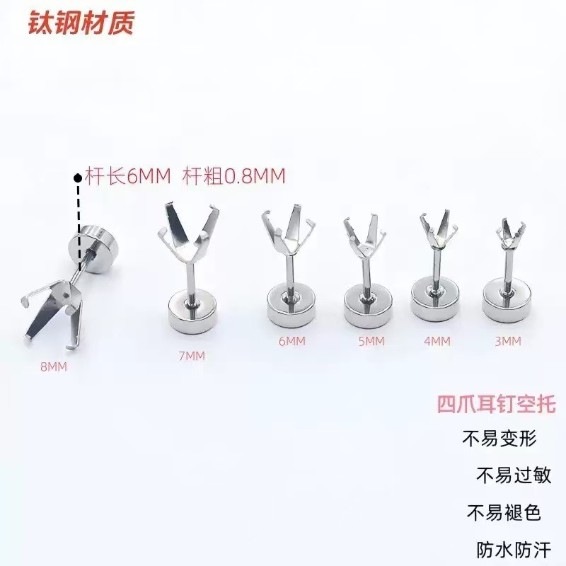 チタン鋼おねじ四本爪ドリルホルダー接着剤不使用のイヤリング空ホルダー DIY イヤリング非アレルギー性非退色耳骨ネイルアクセサリー