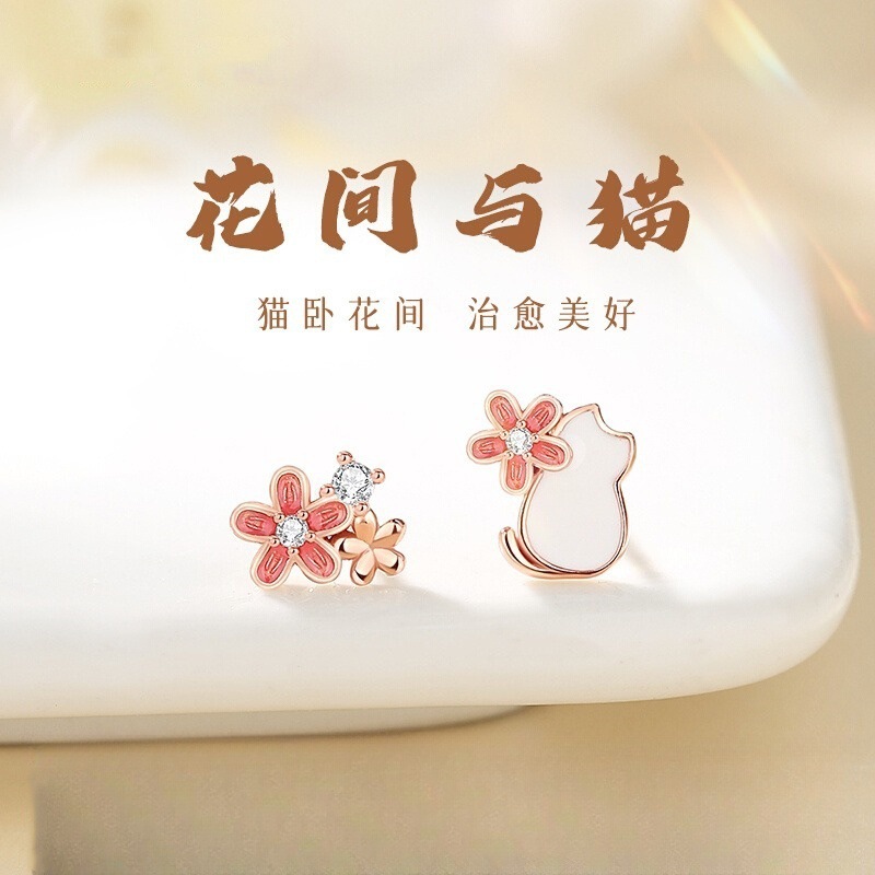 花と猫のイヤリング女性のかわいいイヤリング 2025 新しいホットスタイルハイエンド猫イヤリング誕生日ギフト