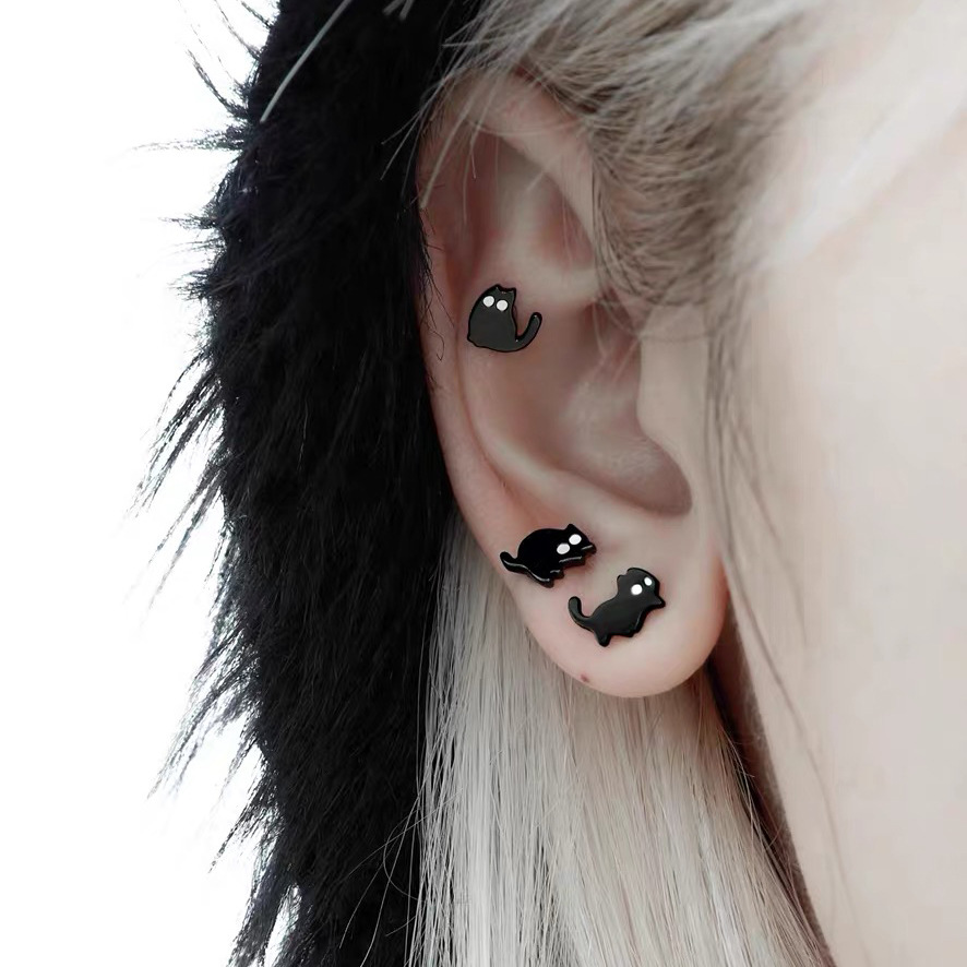 夜更かしイヤリングスターリングシルバー耳ピアスオリジナルニッチデザイン甘くてクールなハイエンドブラックキャットイヤリング