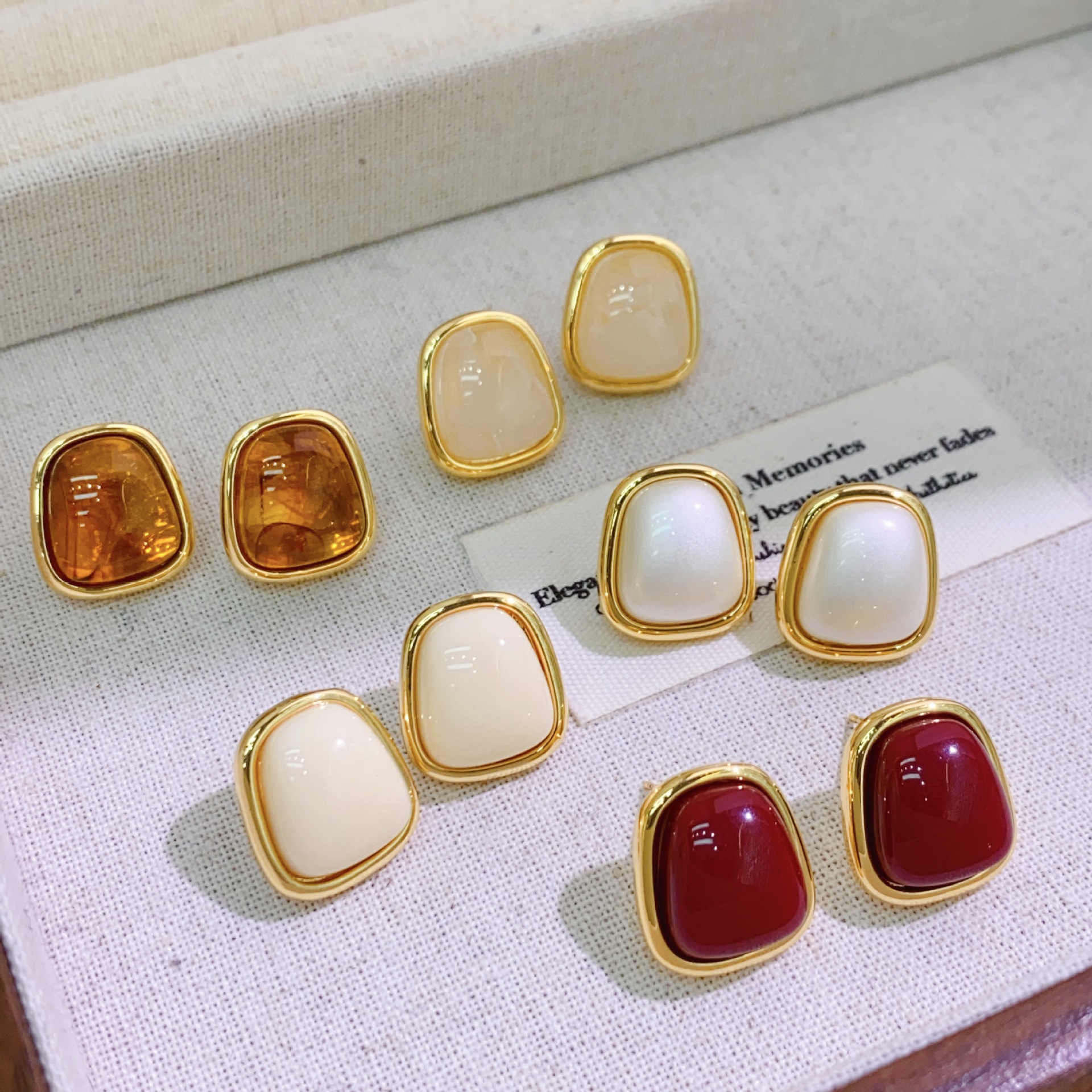 銅メッキ真金フランスレトロ幾何学真珠イヤリング女性新高級感ファッション気質ピアス銀針