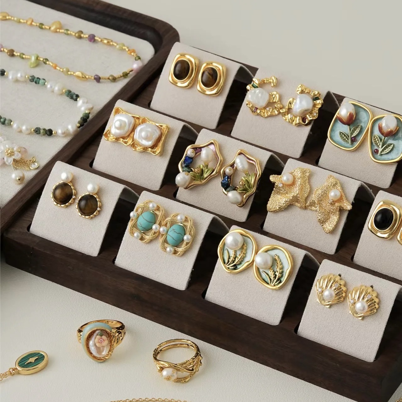 フレンチブラウンメイラード秋冬エナメルレトロパールフラワーイヤリングライトラグジュアリーデザインハイエンドイヤリング