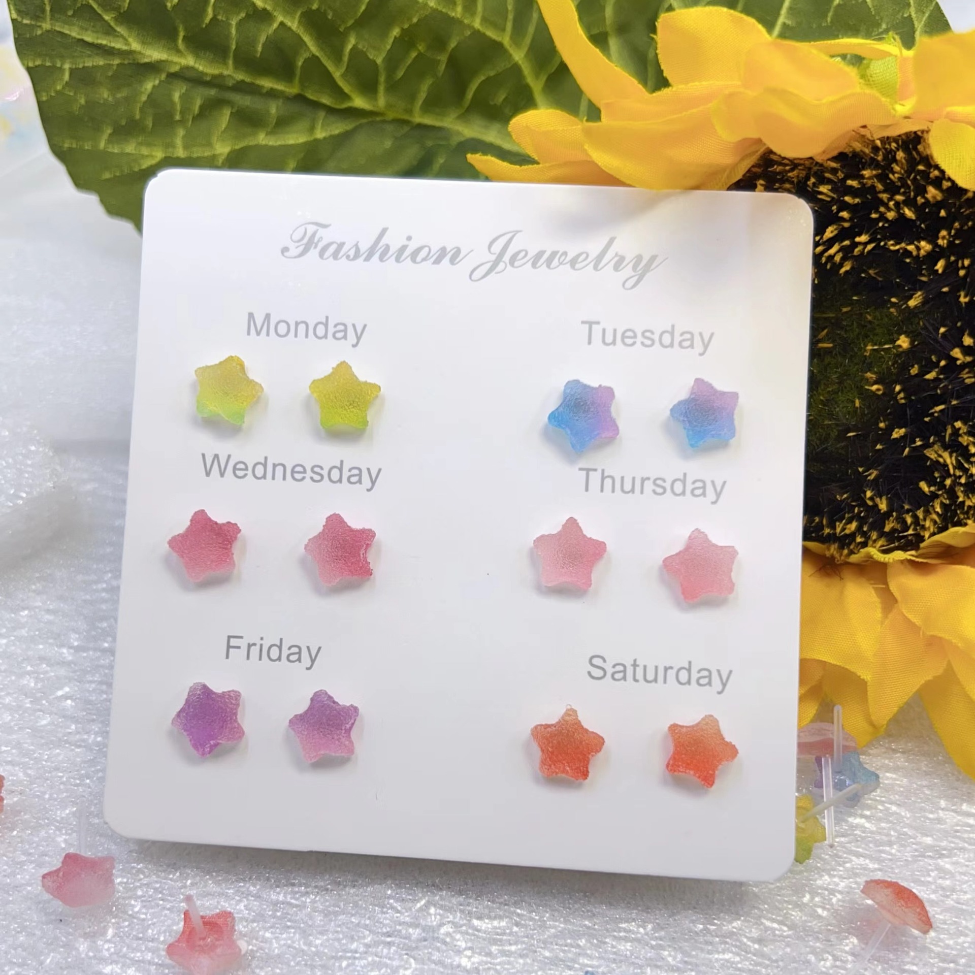 樹脂ピアス創意少女擬似ソフトキャンディ五角星グラデーションカラーピアス