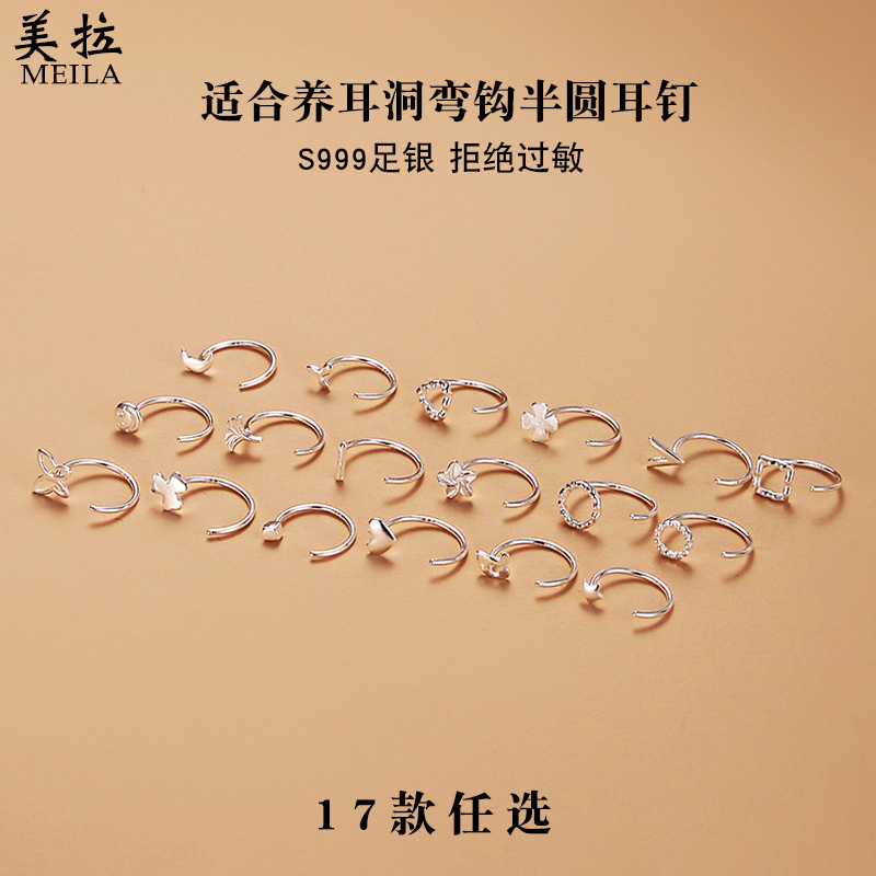 S999純銀耳輪ピアス女性気質シンプルでコンパクトなイヤリング耳穴をつけて足銀耳飾り耳骨輪潮を防ぐ