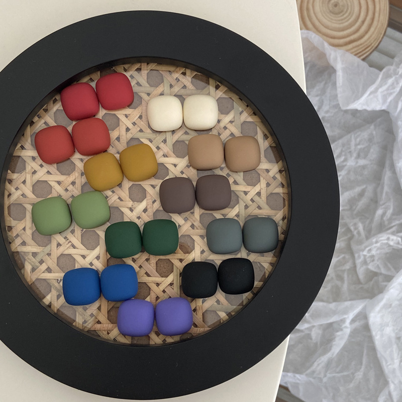 秋冬スタイルのフロスト気質の復古風純色の正方形の洗練された高級感のある銀針ピアスの方糖イヤリングの女性