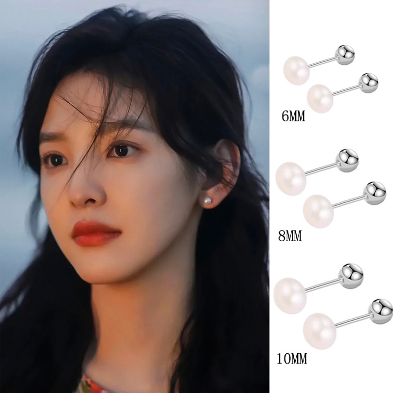 ネジ玉パールイヤリング アイドルスター同風 通勤用 脱ぐ必要なし 小さめイヤリング 多サイズ ホワイトラウンドパールイヤリング 女性用