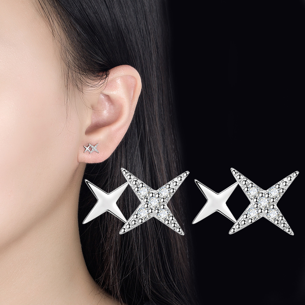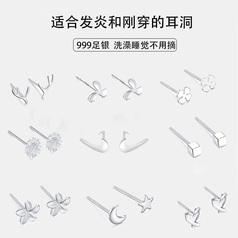 S999純銀ピアス女性シンプルでコンパクトなイヤリング星星月森系耳棒養耳洞防塞銀耳飾り