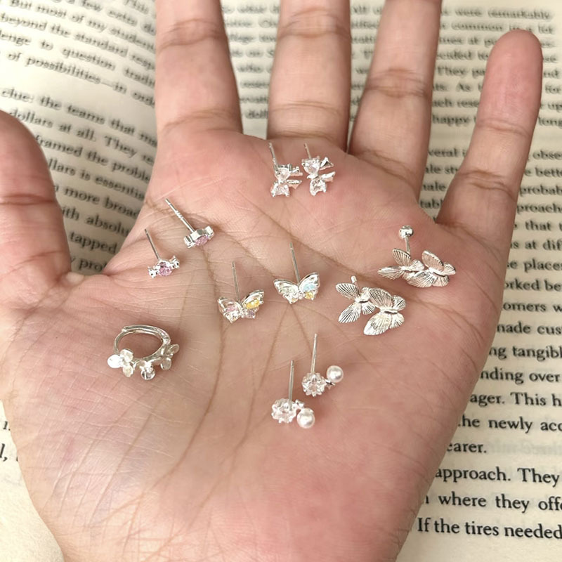 S925純銀蝶ピアス女ins小衆デザイン感寝ています。