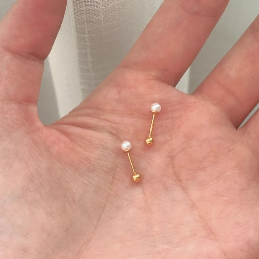 S999銀針はシンプルで、貝珠ピアスは清新で甘い耳の骨釘18k金色の韓国版ねじイヤリングです。