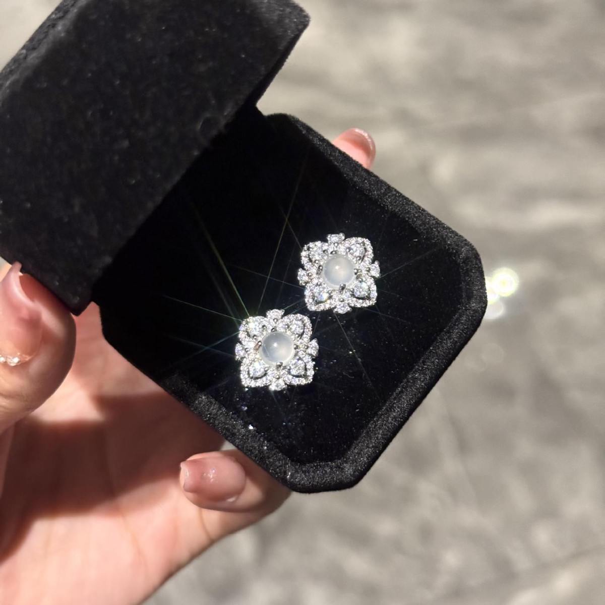 新中国式フラッシュドリル氷透四葉草ピアス女性ヴィンテージ軽贅沢高級感イヤリング大衆デザイン耳飾り