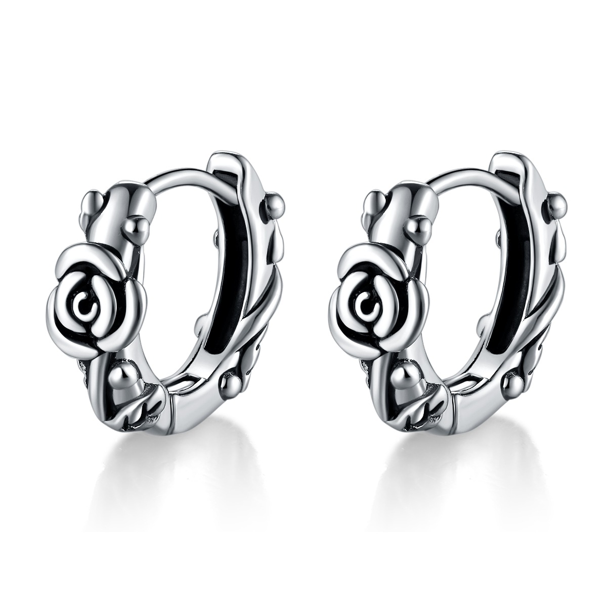潮男レトロ女性イヤリングステンレス個性百合円形ピアスシンプル鋳造バラ耳飾りクロスボーダー商品