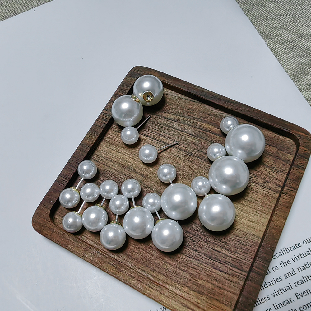 両面真珠イヤリング925銀針欧米ファッション韓国版では、前後の大きさのピアスが流行しています。
