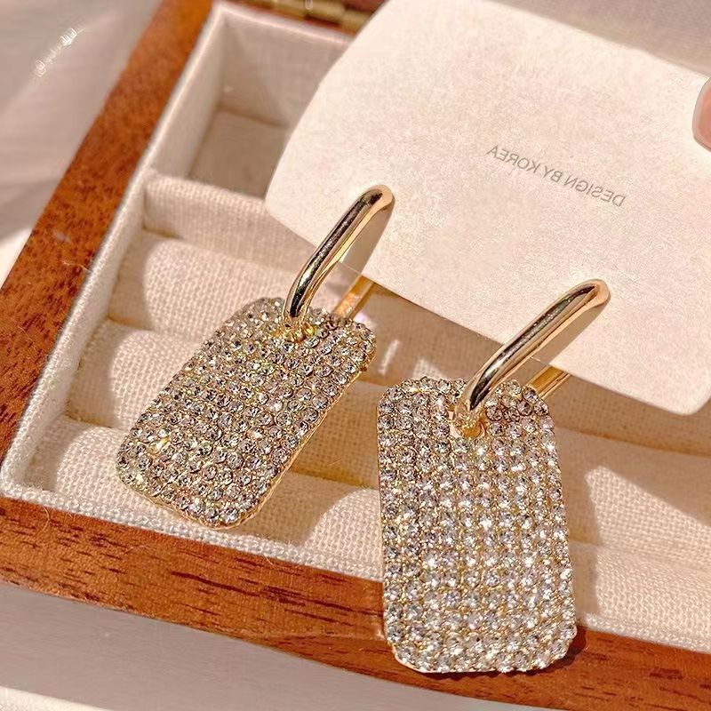 軽くて豪華なドリルの幾何学の四角形のイヤリングの耳のボタンの女性のファッションの2023年の新型の潮の気質は誇張して大気の耳飾りを飾ります。
