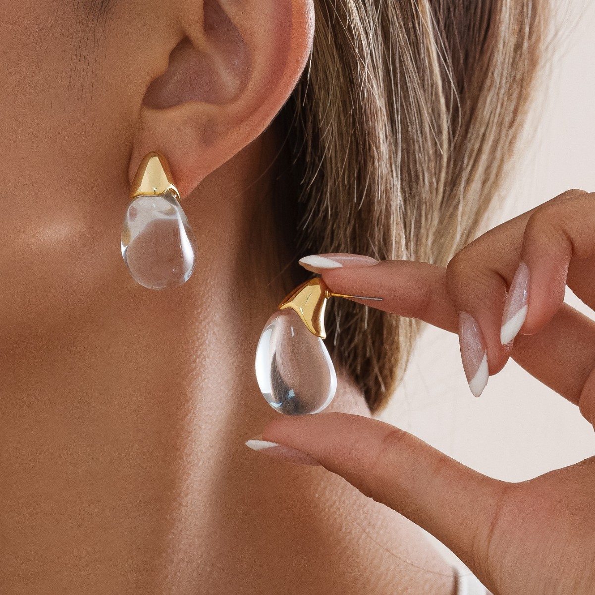 ヨーロッパとアメリカのファッショナブルな新しいウォータードロップイヤリング、ユニークな個性、樹脂透明イヤリング、シンプルでハイエンドの通勤イヤリング