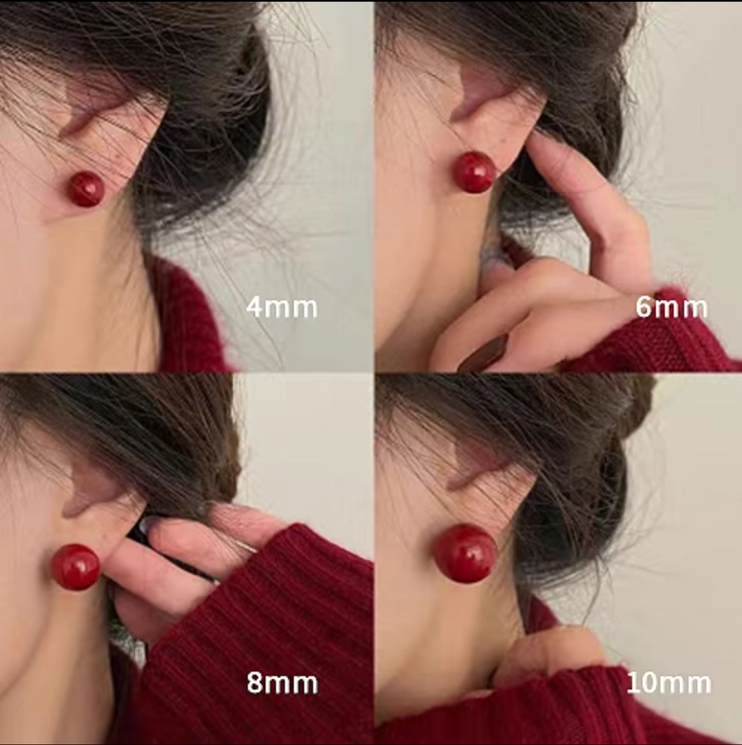 アンゴラタッセル付き真円朱砂イヤリング、シンプルでレトロな香港風、高級感のあるイヤリング、秋冬に白く見えるイヤリング