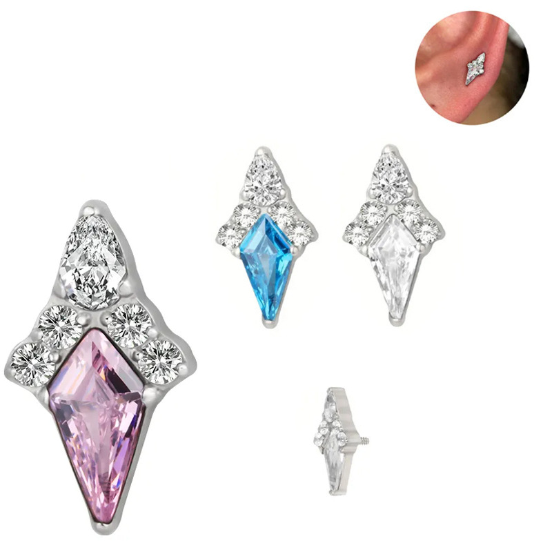 銅合金菱型ジルコン部品耳釘唇釘耳骨釘シンプルDIY部品外歯交換アクセサリー