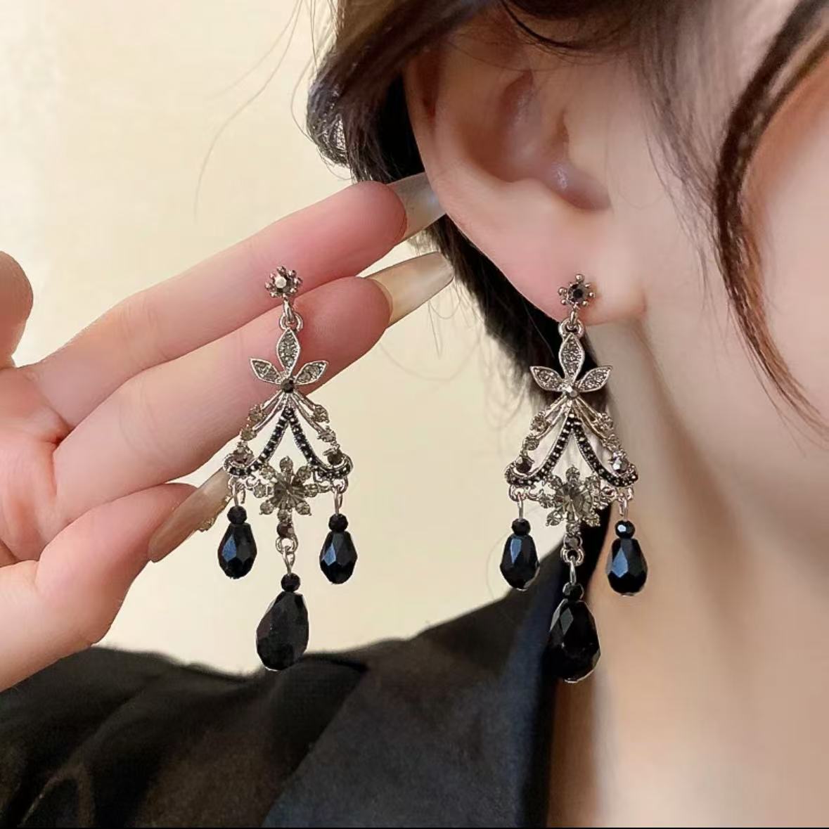 2024新型爆金秋冬ワインレッド925銀針耳輪復古イヤリング女性高級感小衆気質耳