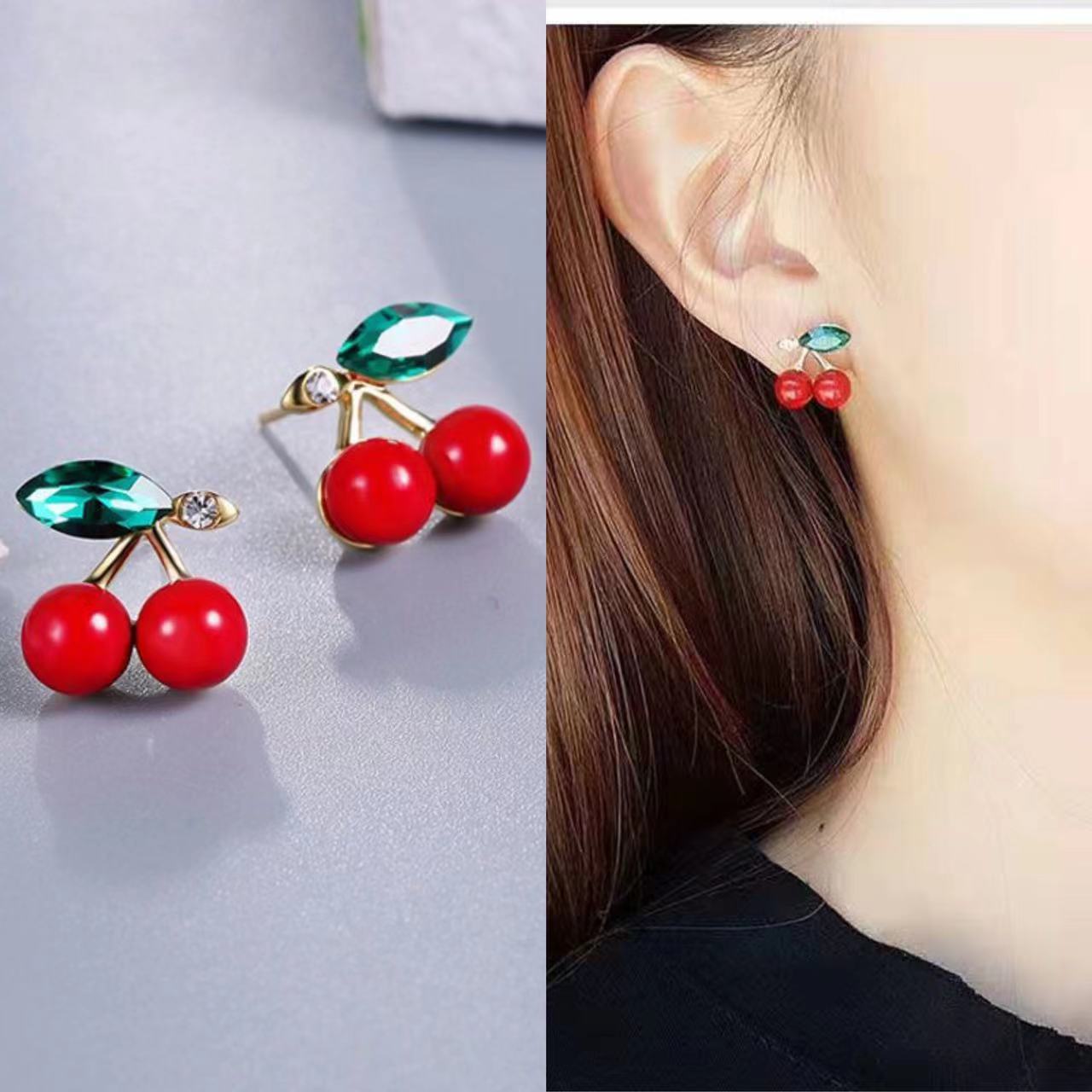 2022新型潮s925銀針かわいい小さな赤いさくらんぼピアス