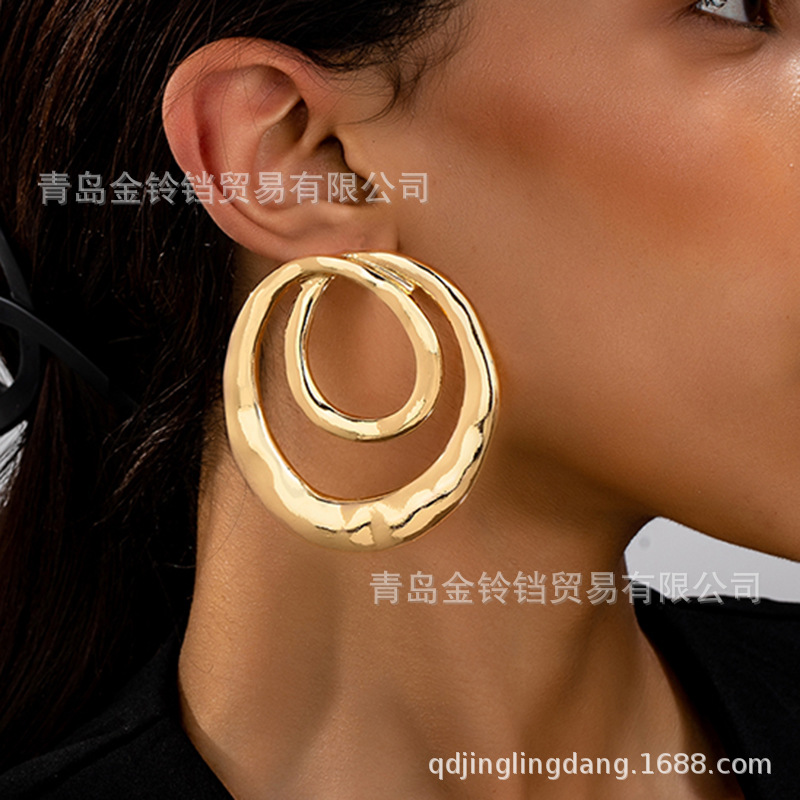 欧米の越境の潮流の新型の金色の金属感の幾何学の円のピアスのシンプルで優雅なファッションのイヤリングのイヤリングのアクセサリー