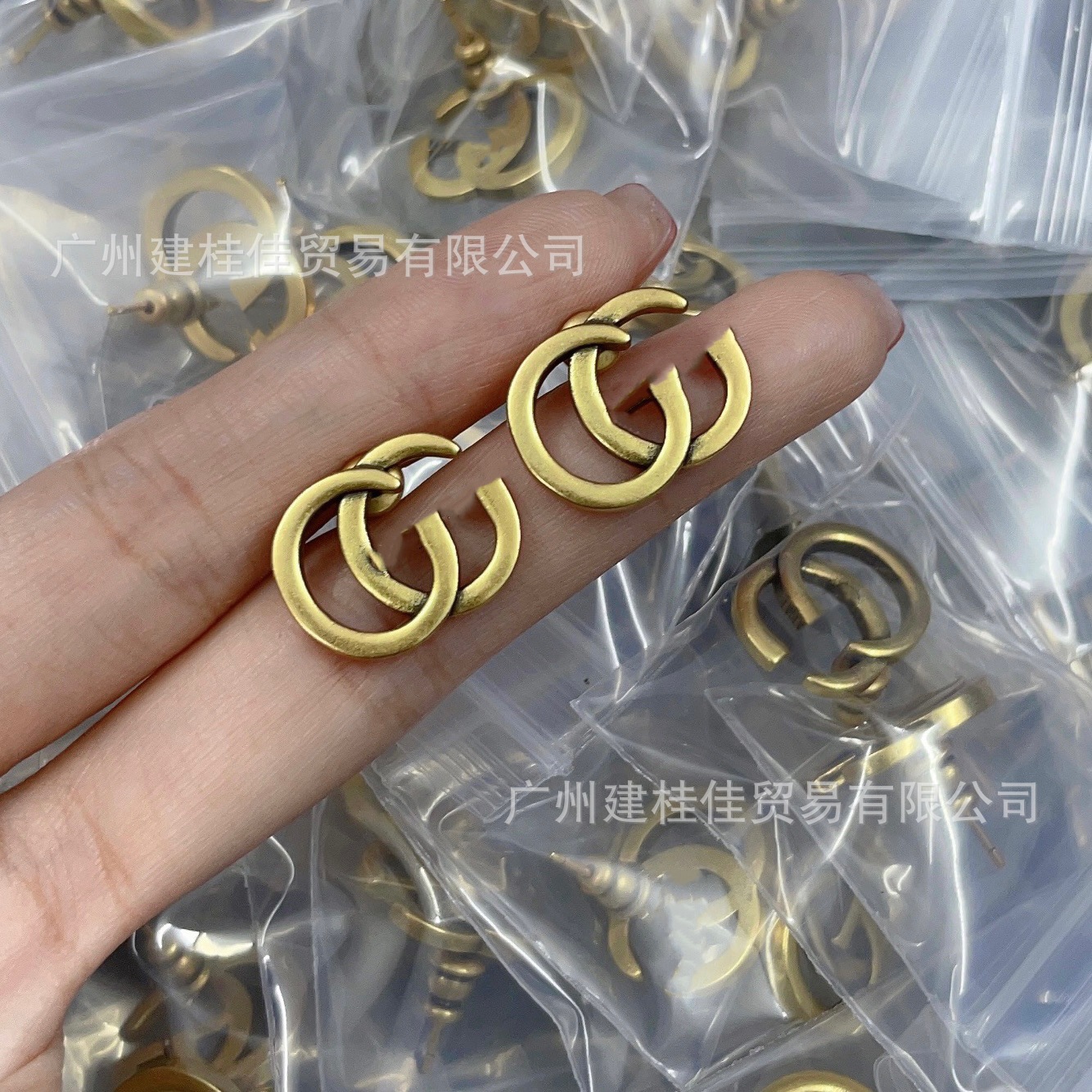 女性用の高品質のクラシックなレター ダブル G イヤリングのリアルショット、女性用のレトロなスタイルの古いファッション イヤリング、工場直送