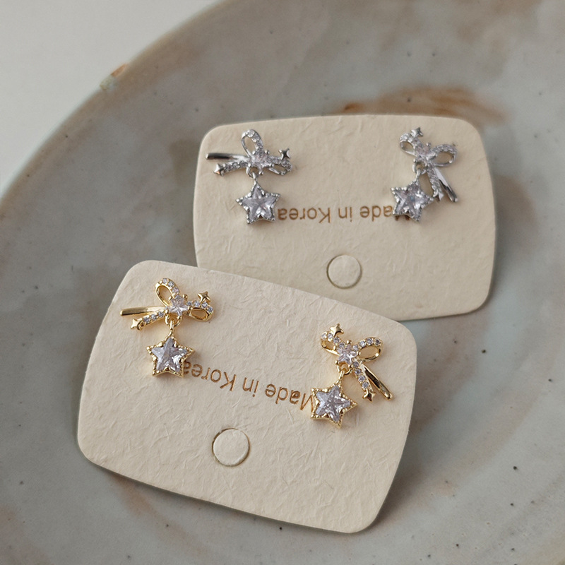 ジルコンスタースタッドピアス、リボンピアス、女性ニッチデザイン、軽い高級感、ハイエンド、シンプルな気質、万能ピアス