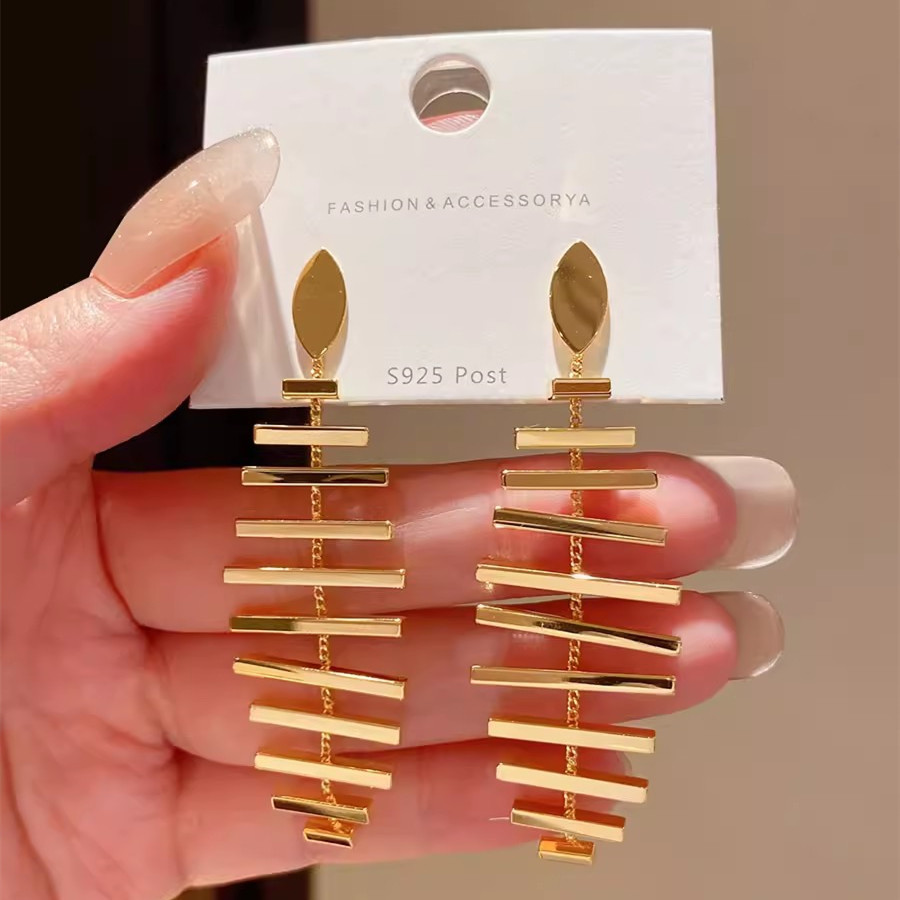 2023年の新型金属の冷たい風の気質の長いタイプの魚の骨のイヤリングの女性の大衆の気質は誇張して高級感の耳飾りを感じます。