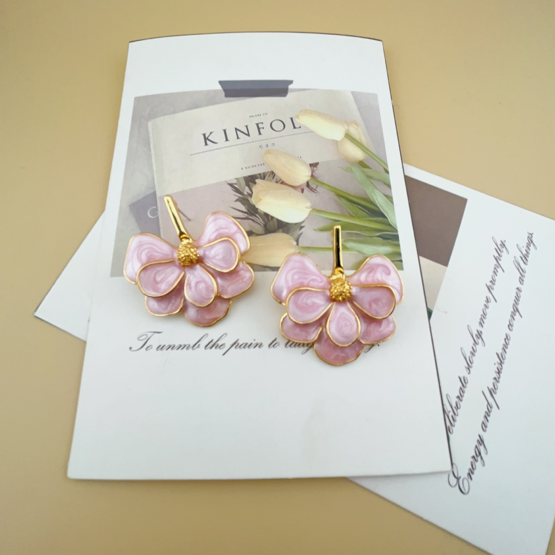 新中国式エナメルカラーピンクの大きな花のイヤリングはフランス風の優しさと優雅さを備えています。