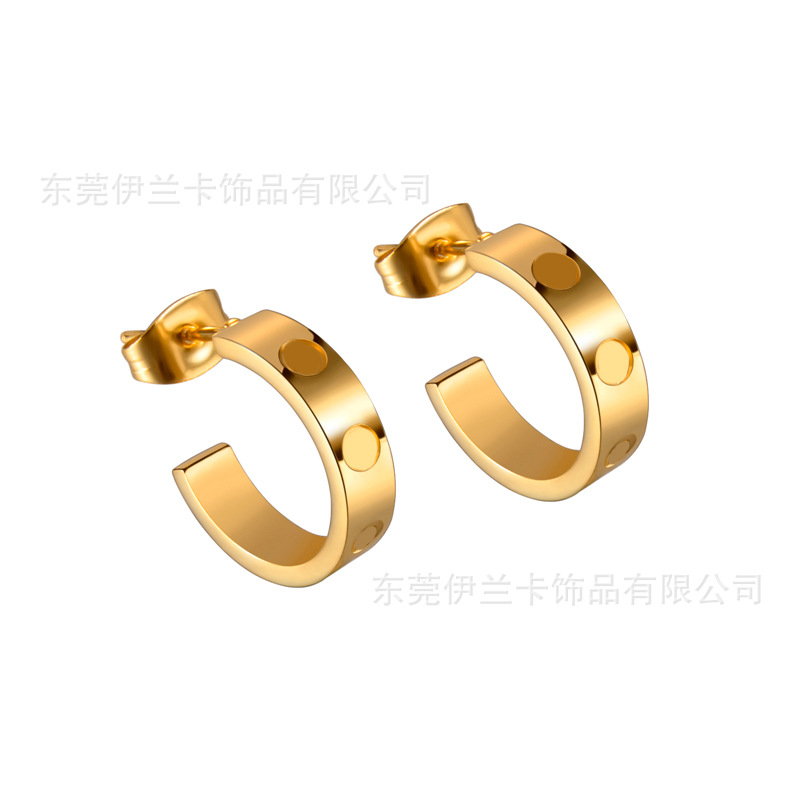 卡地家ねじc形チタン鋼イヤリングファッションチタン鋼ピアス工場18k彩金円形高級スポット耳