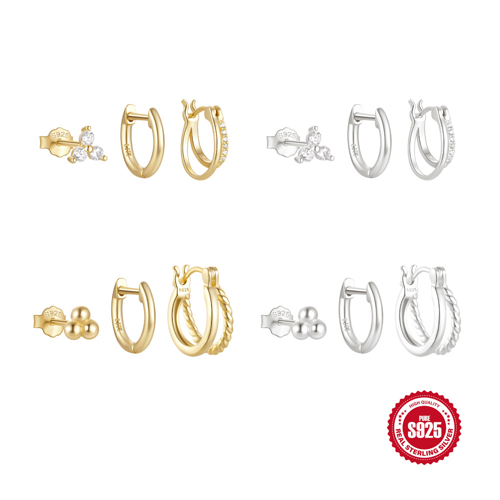 S925純銀の日常的な気質とダイヤモンドのボールセットのイヤリングを組み合わせました。