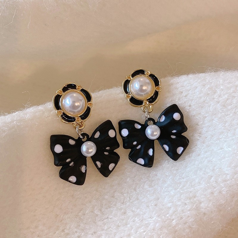 2023年新型東大門の小衆のイヤリングの波点の秋冬は蝶結びのイヤリングを組み合わせて韓国の高級感の耳飾りになります。
