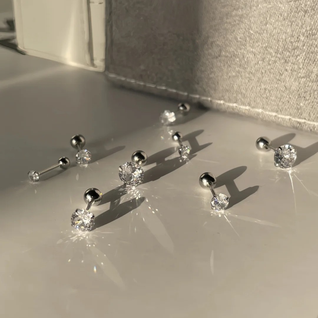 S999銀針は寝ています。耳の穴のピアスを摘む必要はありません。シンプルな雰囲気のジルコンのイヤリングです。