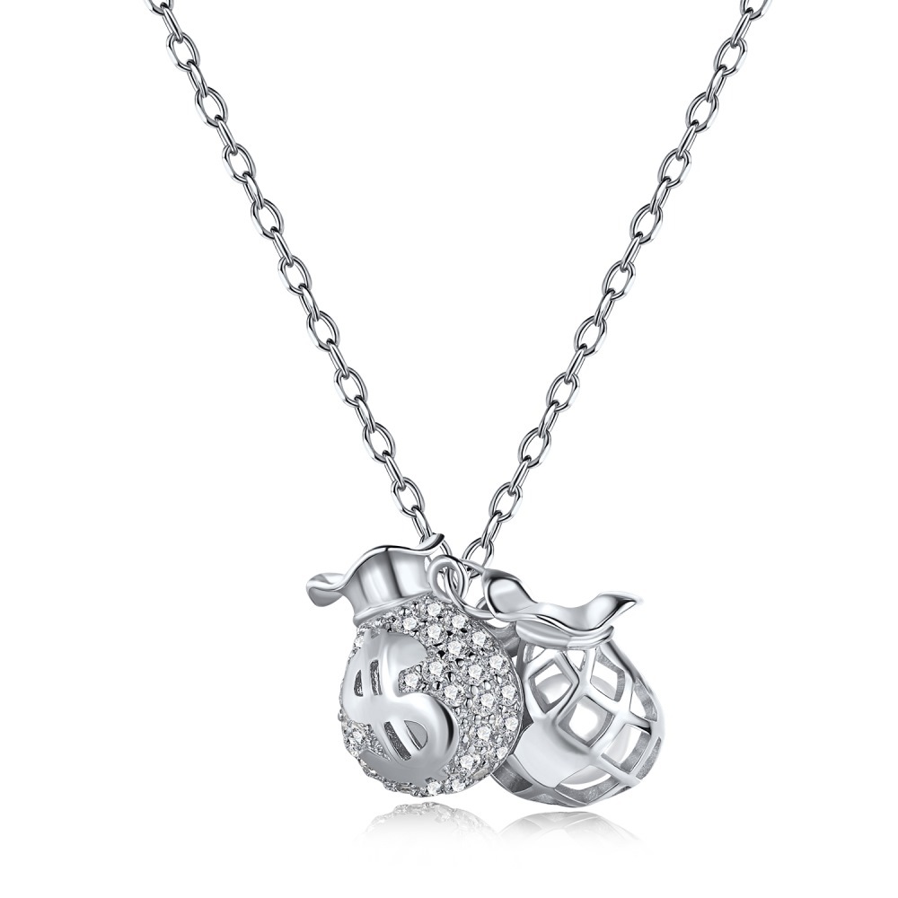 S925純銀小銭袋ネックレス鎖骨チェーン満ドリルの精巧な財布招財ペンダント韓国版百合銀飾り工場