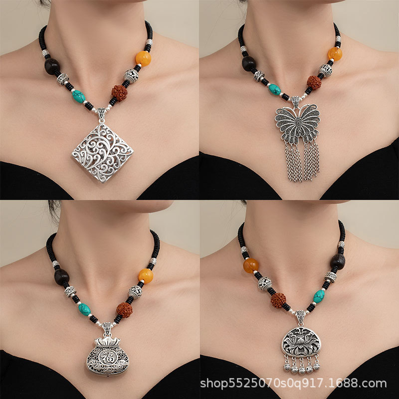 レトロな金剛菩提調節可能な鎖骨チェーン女性のチベットシルバー蜜蝋ネックレスセーターチェーン文学アクセサリー