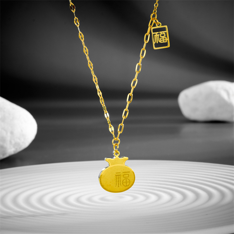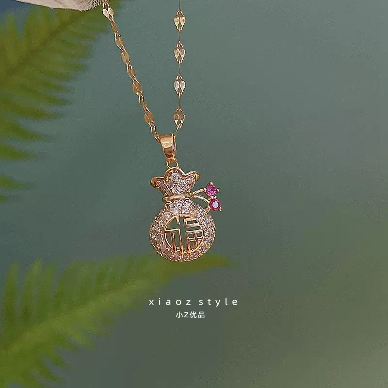 チタン鋼のネックレス2023福珠銭袋軽豪華小衆デザイン感チタン鋼保色持続アクセサリー新箱チェーン
