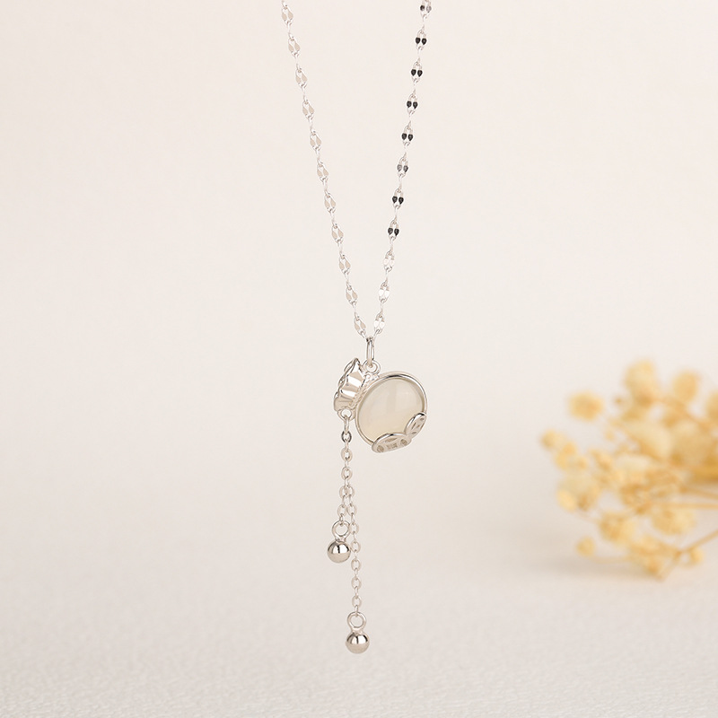 ファッションシンプル銭袋透かし彫り花糸エナメル招財猫ネックレス宮廷風ペンダント女性新国風百合アクセサリー