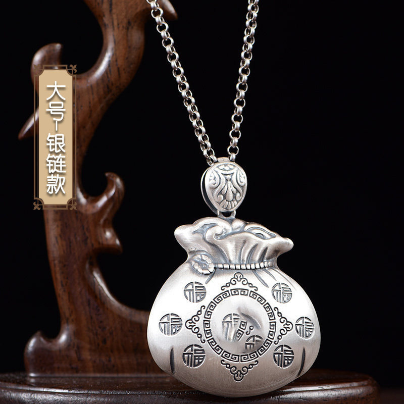純銀999進財福袋ペンダント男性レトロ財布足銀ネックレスセーターチェーンペンダント