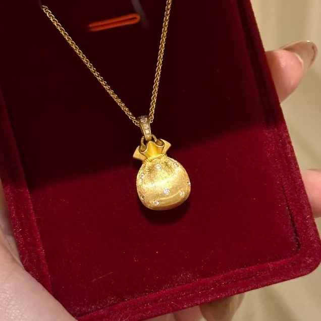 サンドゴールドジュエリー、フィリグリー中空福袋ペンダントネックレス、軽い高級感と高級感のあるマネーバッグ鎖骨チェーン、ギフト対象者向け