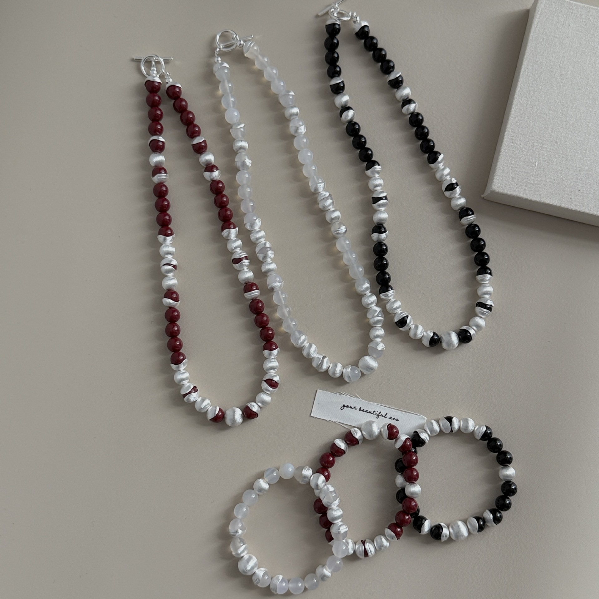 925純銀重工銀包天然石ビーズネックレス女性の新型衝突色黒瑪瑙白玉髄鎖女性