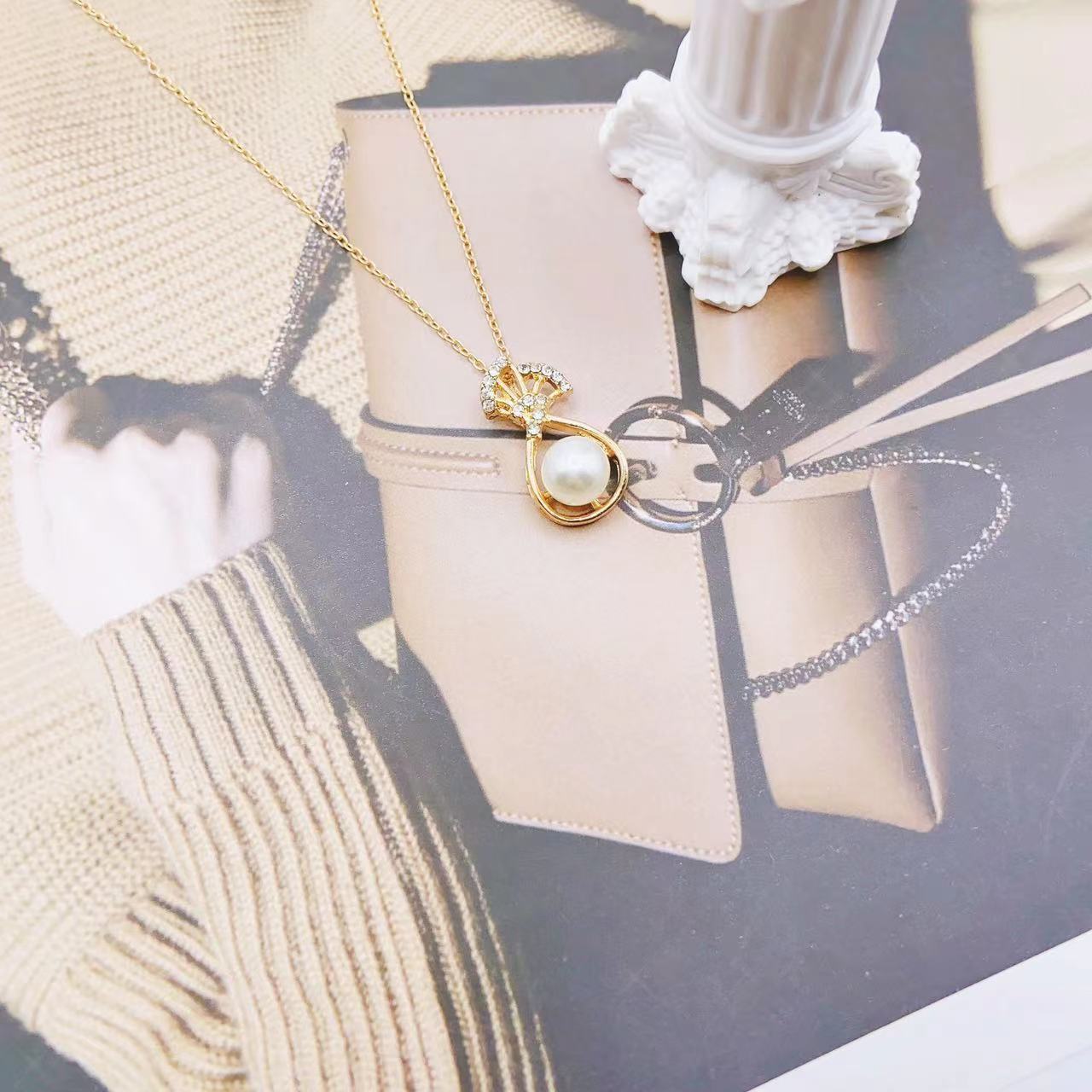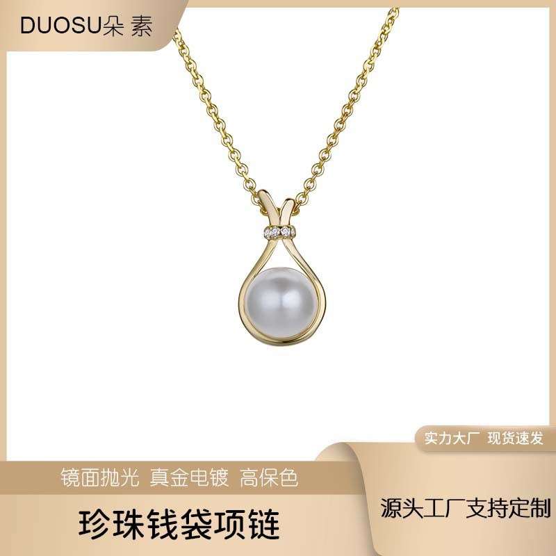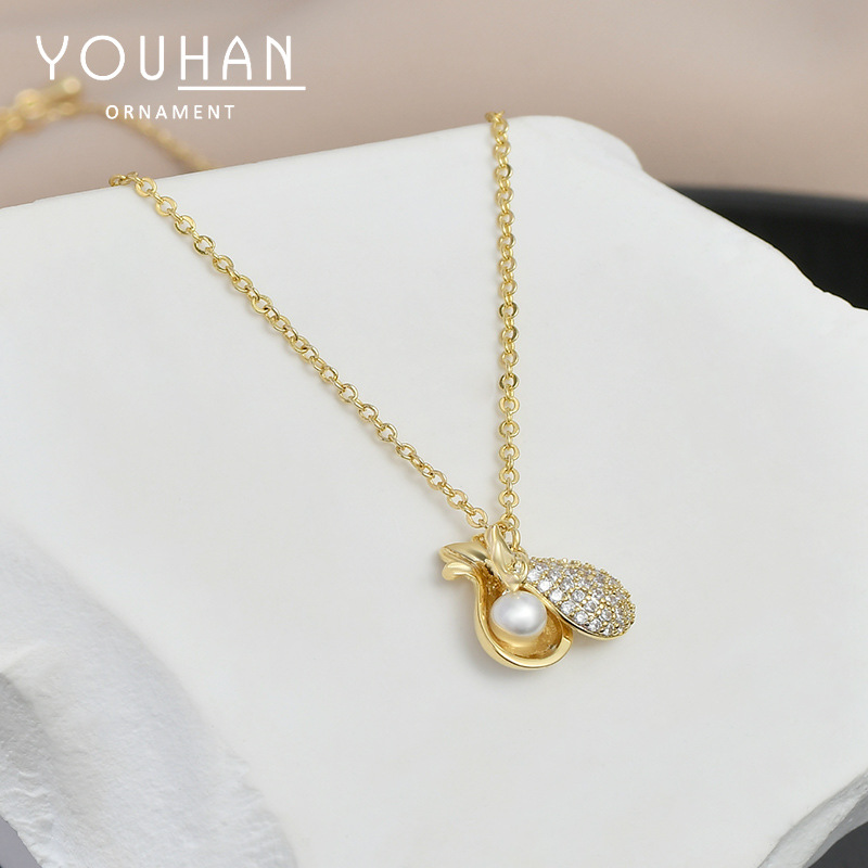 本物の金の電気めっきの小さいジルコンの気質の鎖の女性の高級感のお金の袋のネックレスの個性の学生の真珠の首の鎖の潮