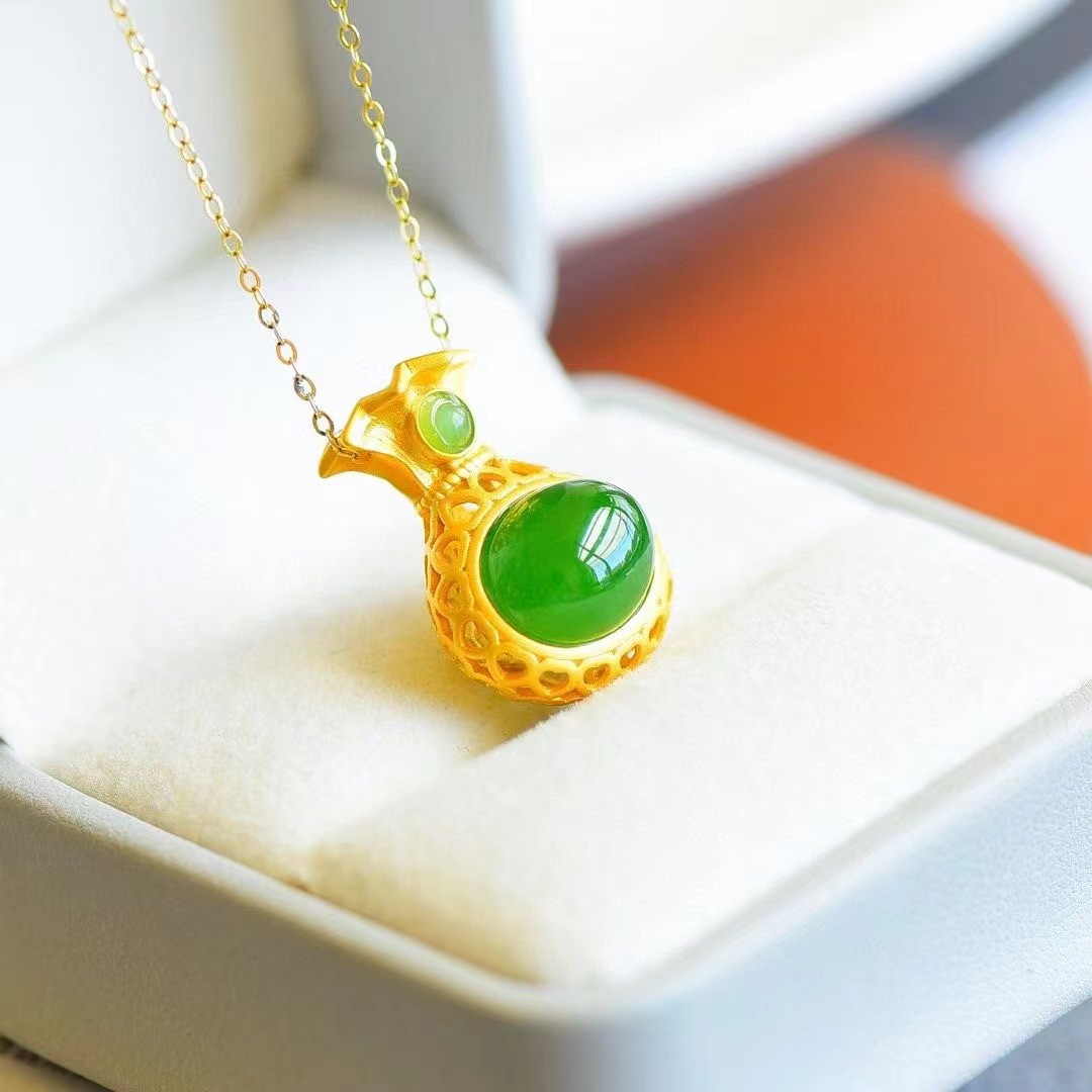 白玉髄銭袋ペンダント古法金焼藍祥雲項装飾中国民族風ネックレス女性卸売り