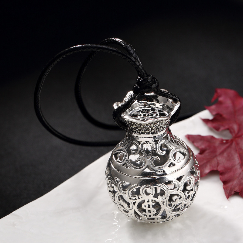 純銀s925大銭袋はペンダントネックレスの個性的な透かし彫り男女士が持ち歩いている香嚢球ストラップ自動車を開けることができる