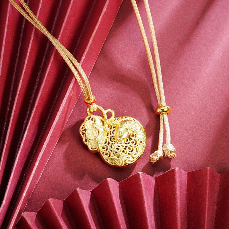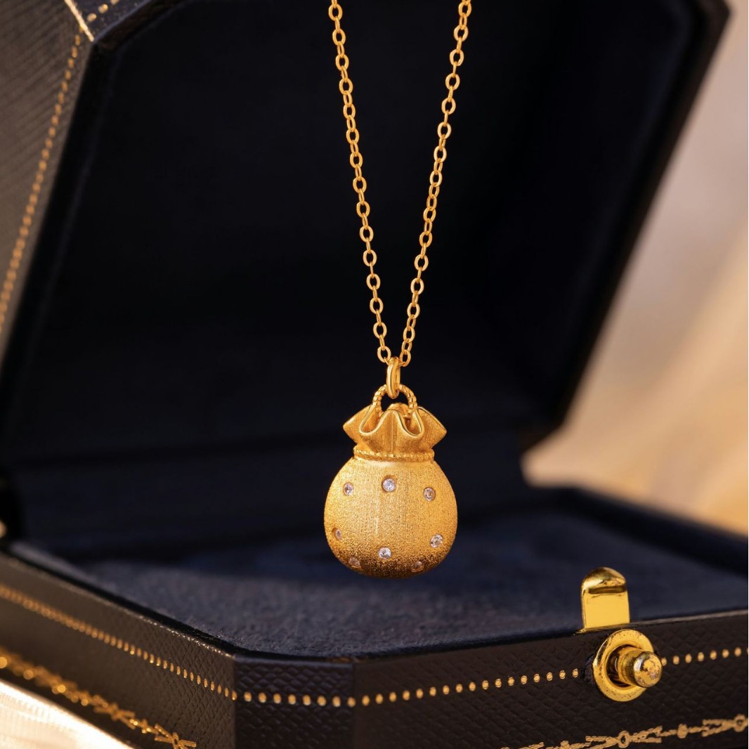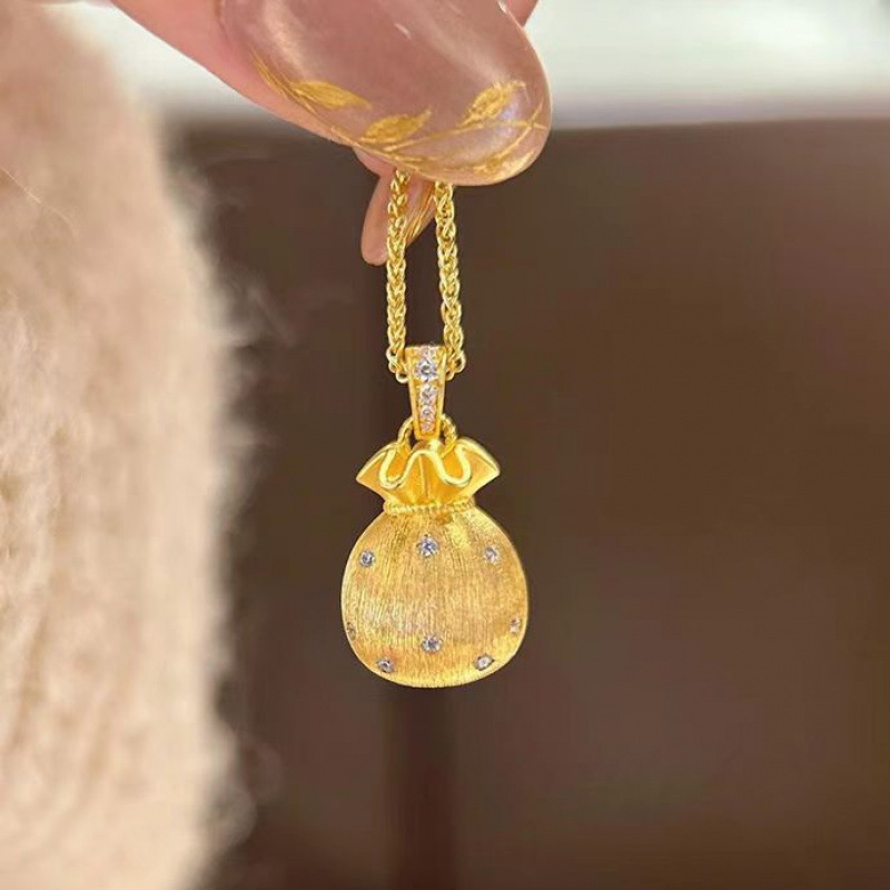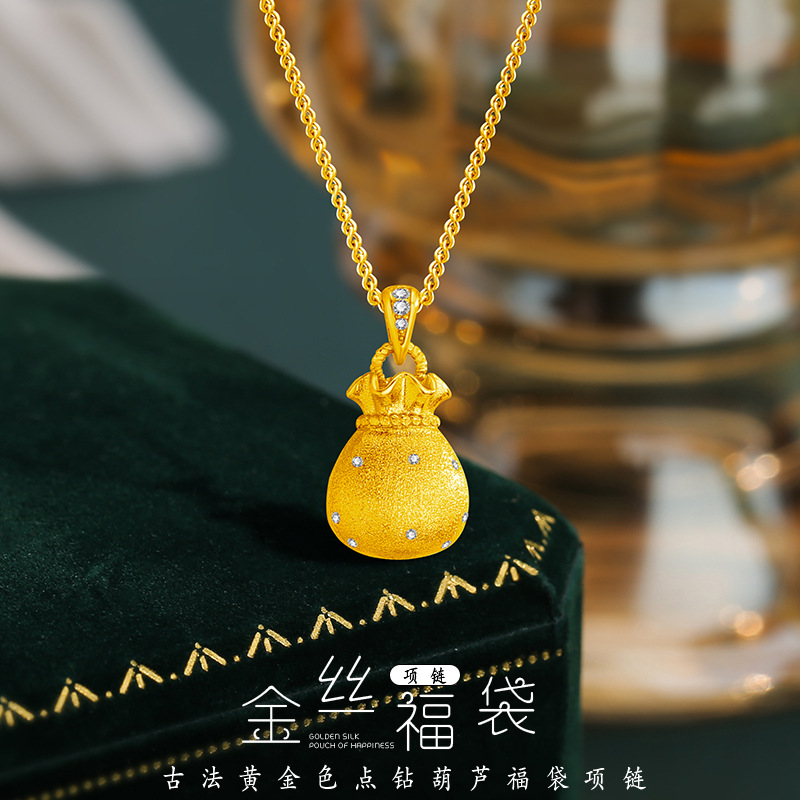 新中国式古法沙金には、小さな福袋のペンダントのネックレスがあります。