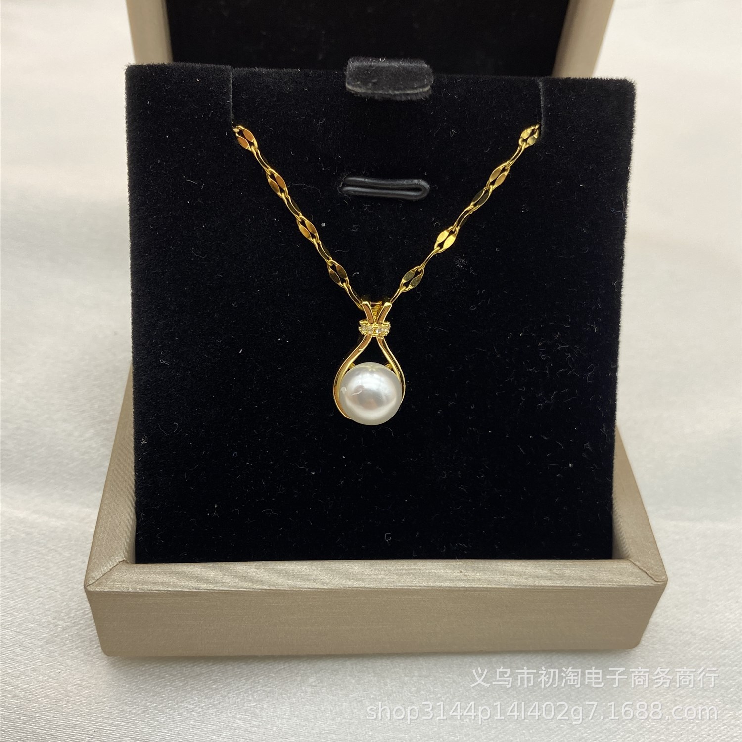 メッキチタン鋼ネックレス女性真珠鎖骨チェーンペンダントネックレス真金保色百合万能チェーン卸売り