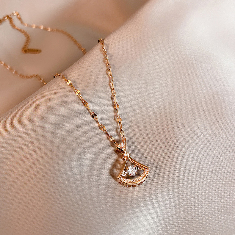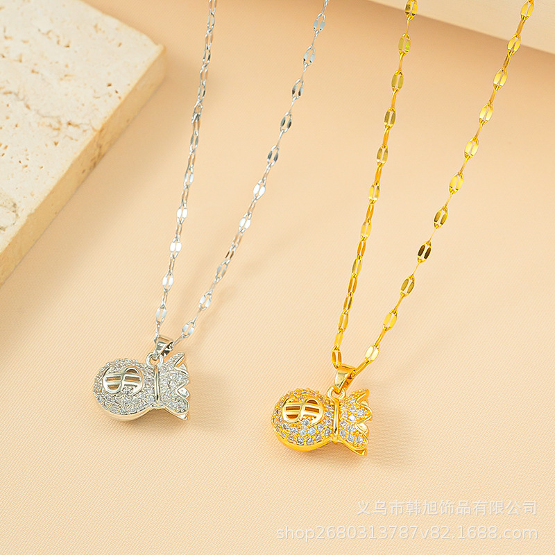 詩瑶の金色のお金の袋の個性のチタンの鋼のネックレスの女性の高級なデザイン感の小さい大衆の2024の新型の潮の軽い豪華な鎖の骨のチェーン