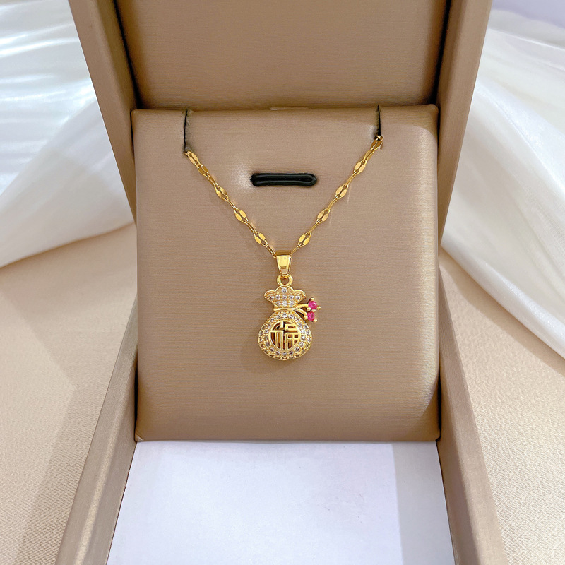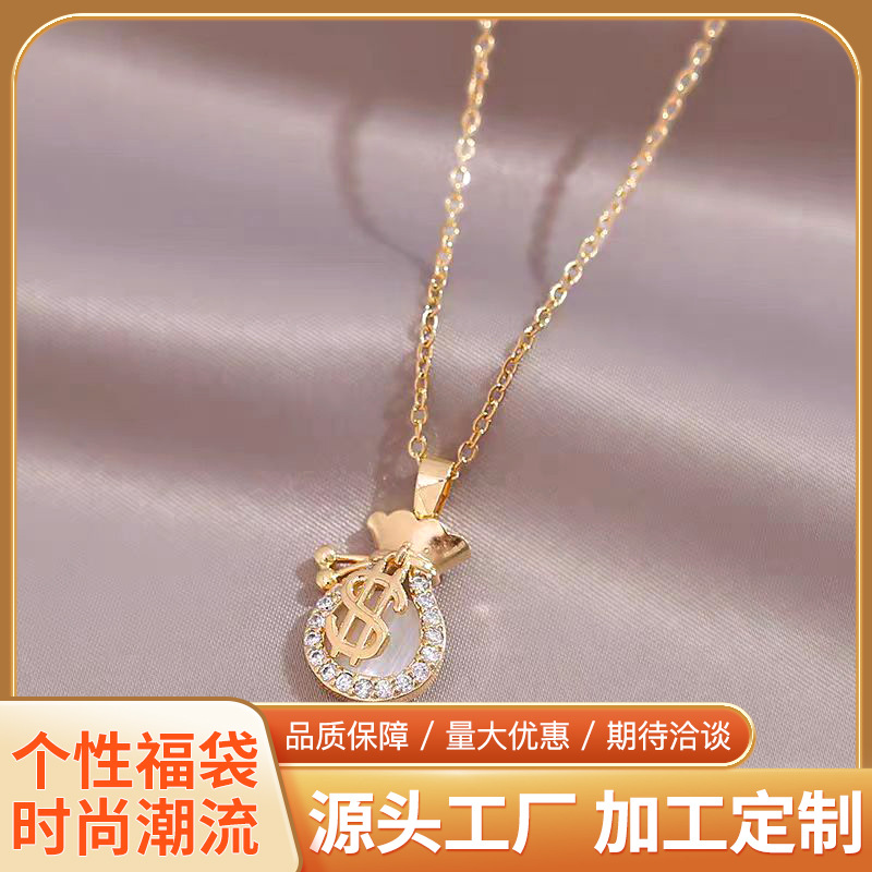 チタン鋼のネックレス2023福珠銭袋軽豪華小衆デザイン感チタン鋼保色持続アクセサリー新箱チェーン
