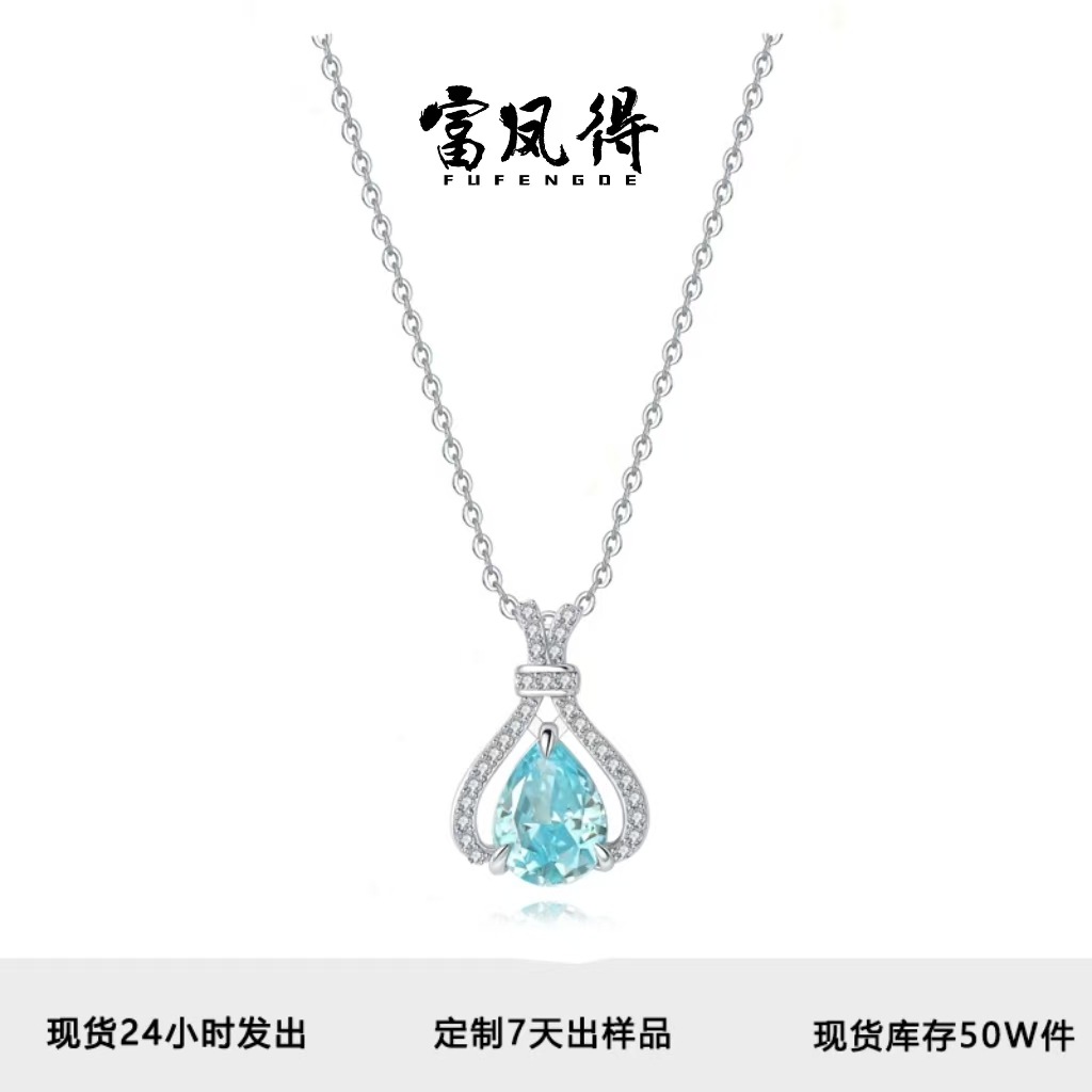 新しいs925純銀ネックレス女性海洋の心水滴ペンダントファッション
