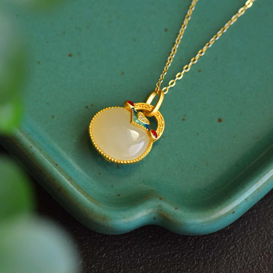 白玉髄銭袋ペンダント古法金焼藍祥雲項装飾中国民族風ネックレス女性卸売り